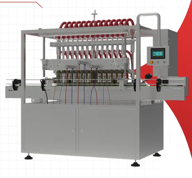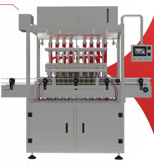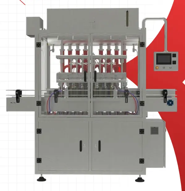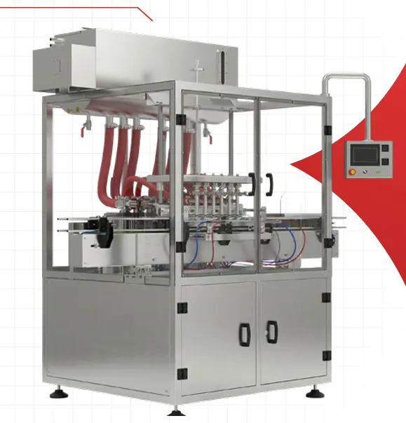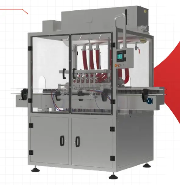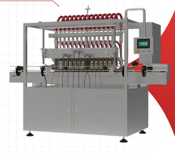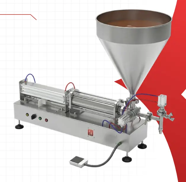 A machine for filling high, medium, and low viscosity liquids, and liquids with high temperatures such as: oil, chocolate, jam, honey, juice, ketchup, tahini, mango juice, natural juices, and tomato sauce.
